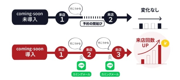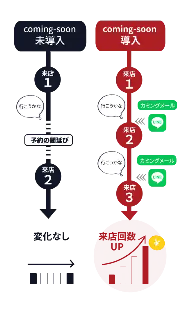 常連様に来店を促したいなら、『カミングメール』でお誘いできます。